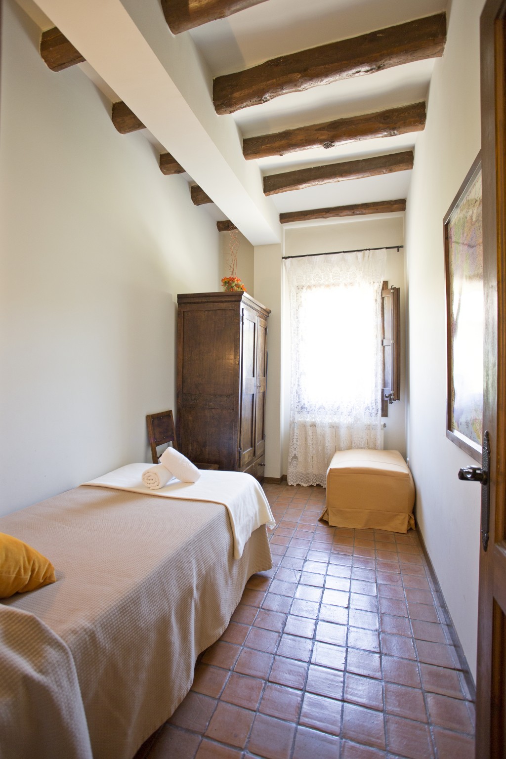 - Disposa de 3 habitacions: 1 doble llit matrimoni, 1 doble 2 llits individuals, 1 individual (+ 1 llit supletori)
