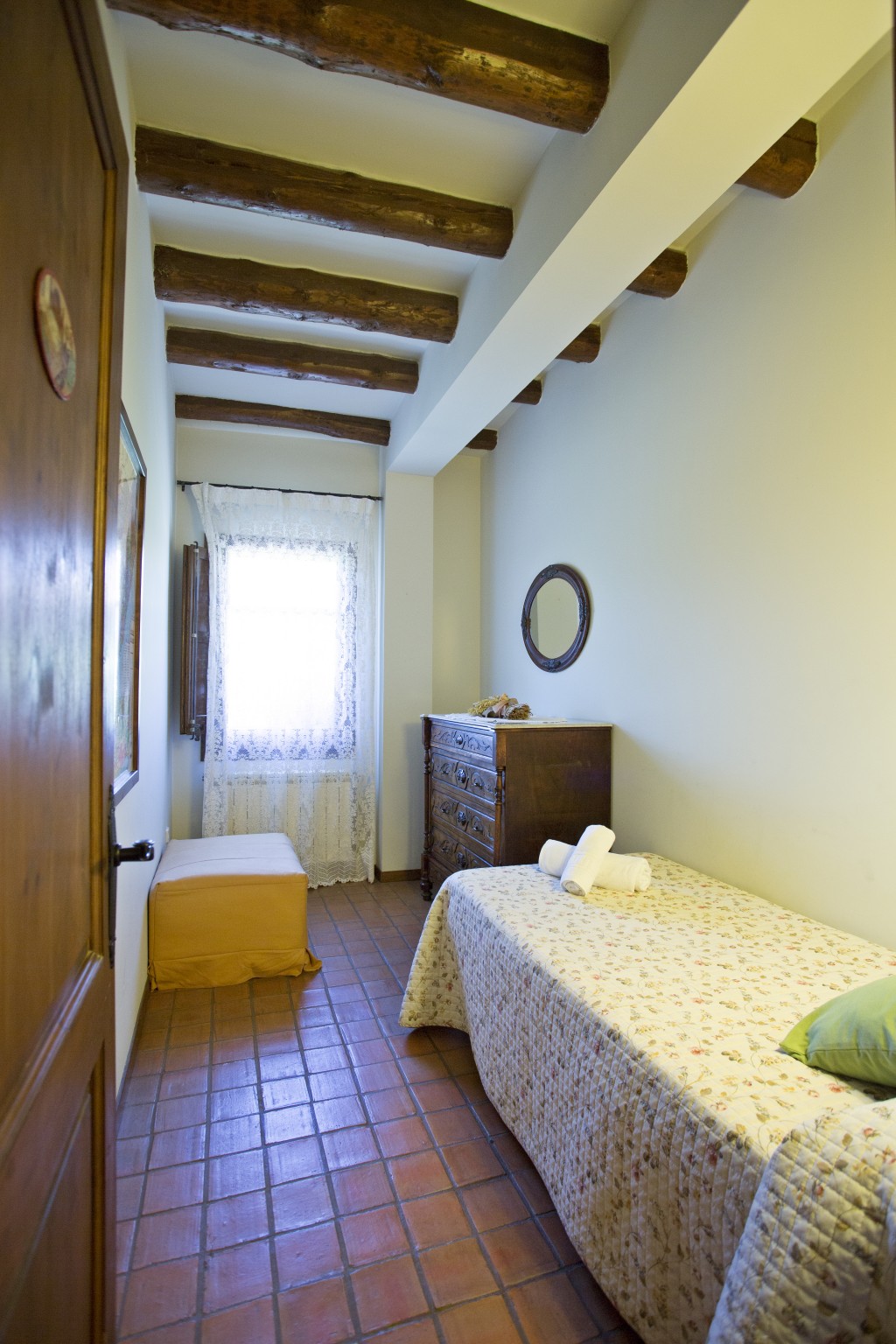- Dispone de 3 habitaciones: 1 doble cama matrimonio, 1 doble camas individuales, 1 individual (+ 1 cama supletoria)
